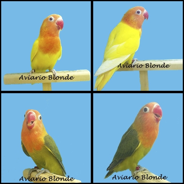 Pareja F2: Lutino (Macho) X Verde D / Violeta Sf /Azul / Ino (Hembra)